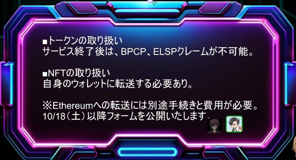 BPCPなどのゲーム内トークンの取り出しができなくなるのでクレームをしないといけない。