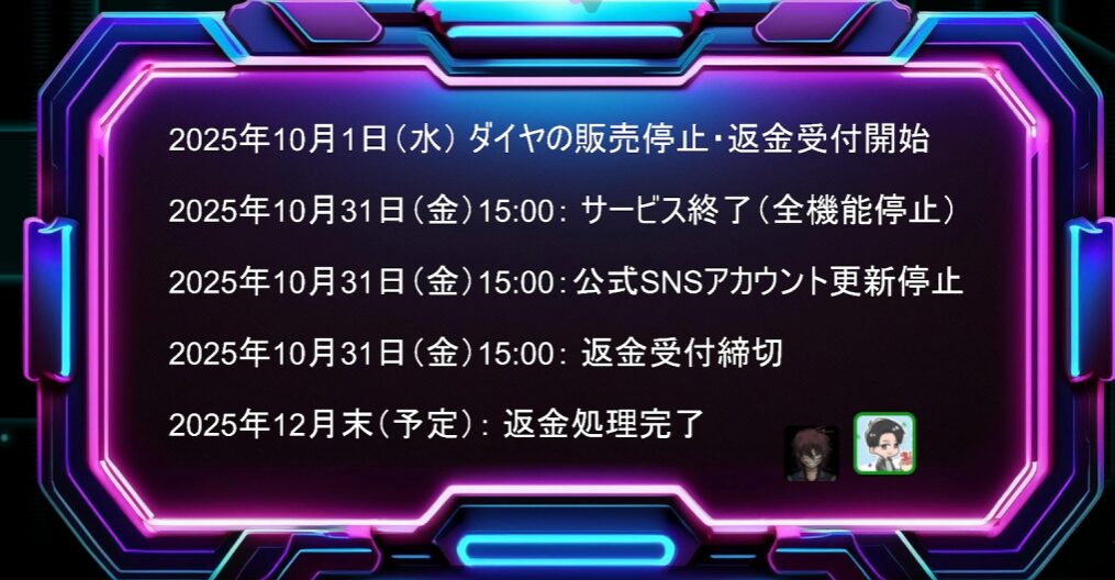 10/1:ダイヤ(課金アイテム)の販売停止と返金受付