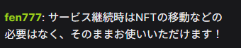 A:運営が移管後にNFTやアセットはエコシステム部分と連携していきたい(価値的な部分)