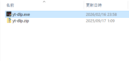 上記のフォルダにyt-dlp.exeがあるので、先ほどDLした最新のEXEファイルと差し替えます。