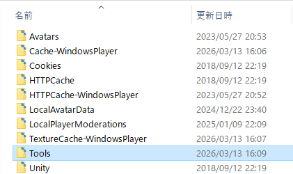 C:\Users\ユーザー名\AppData\LocalLow\VRChat\vrchat\Tools