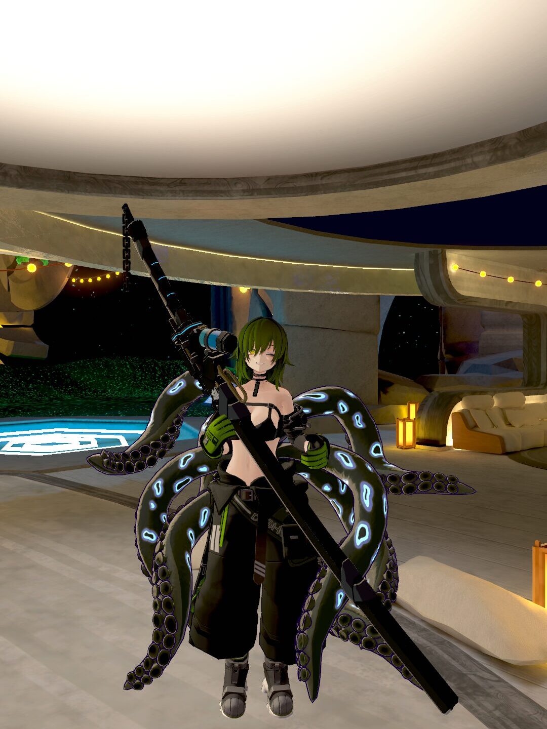 ヒョウモンダコモチーフと海の生物系や人外系が好みなので展示を見たときに刺さったアバター。