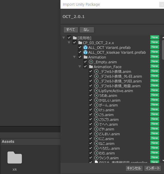 プロジェクトを立ち上げたらAssetunitypackageをドロップしてインポート。