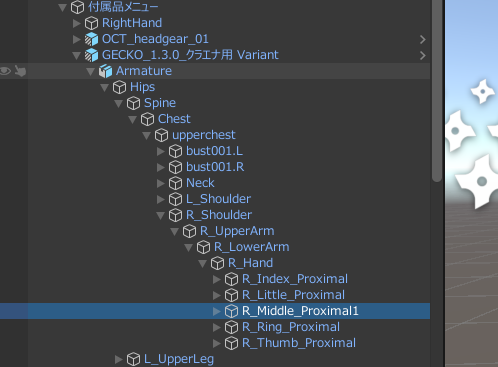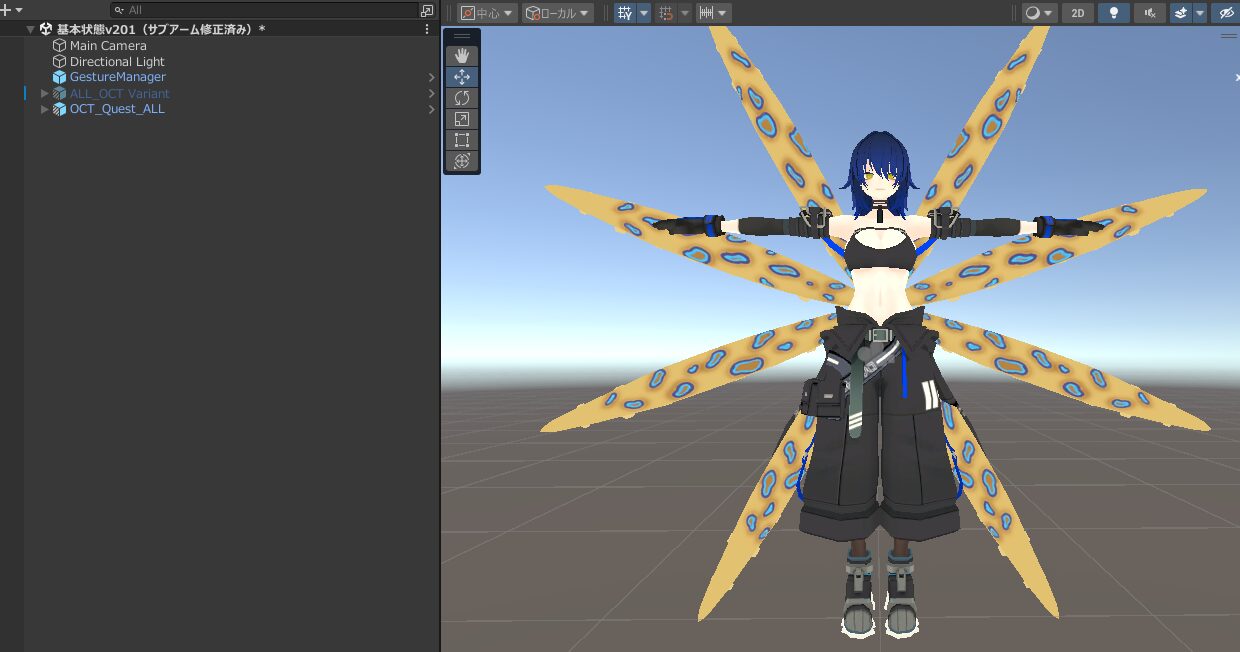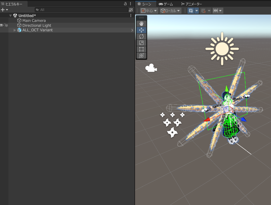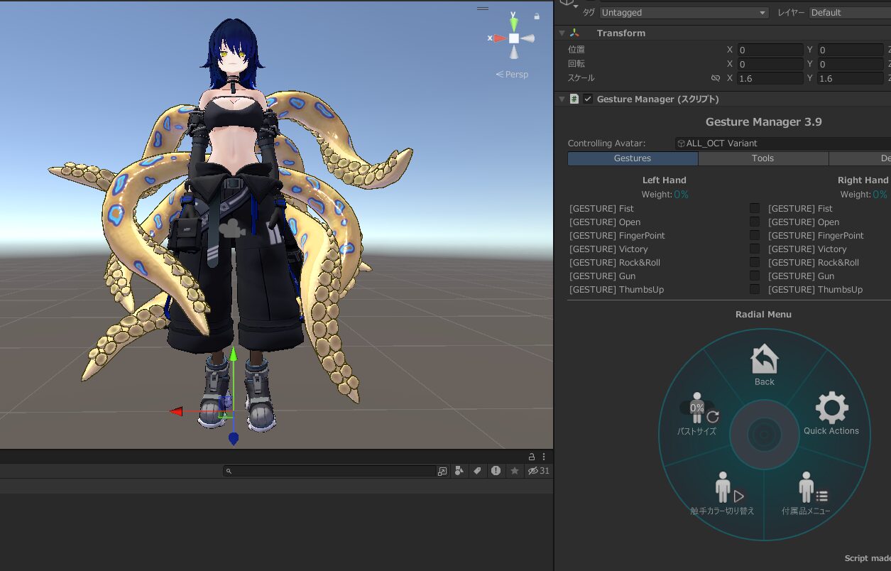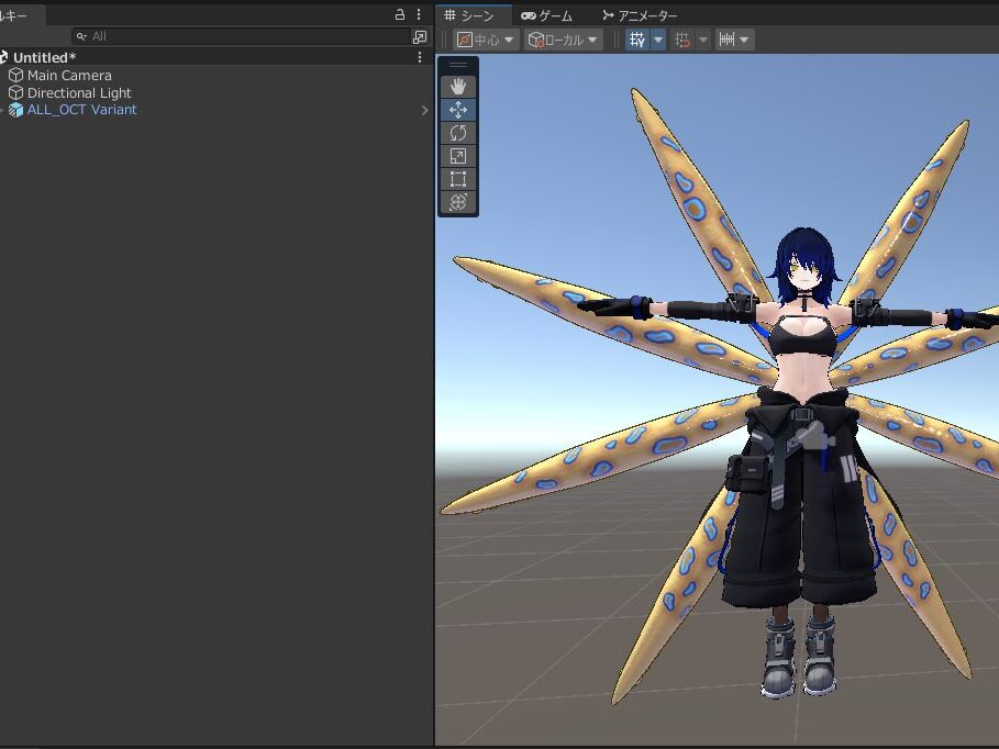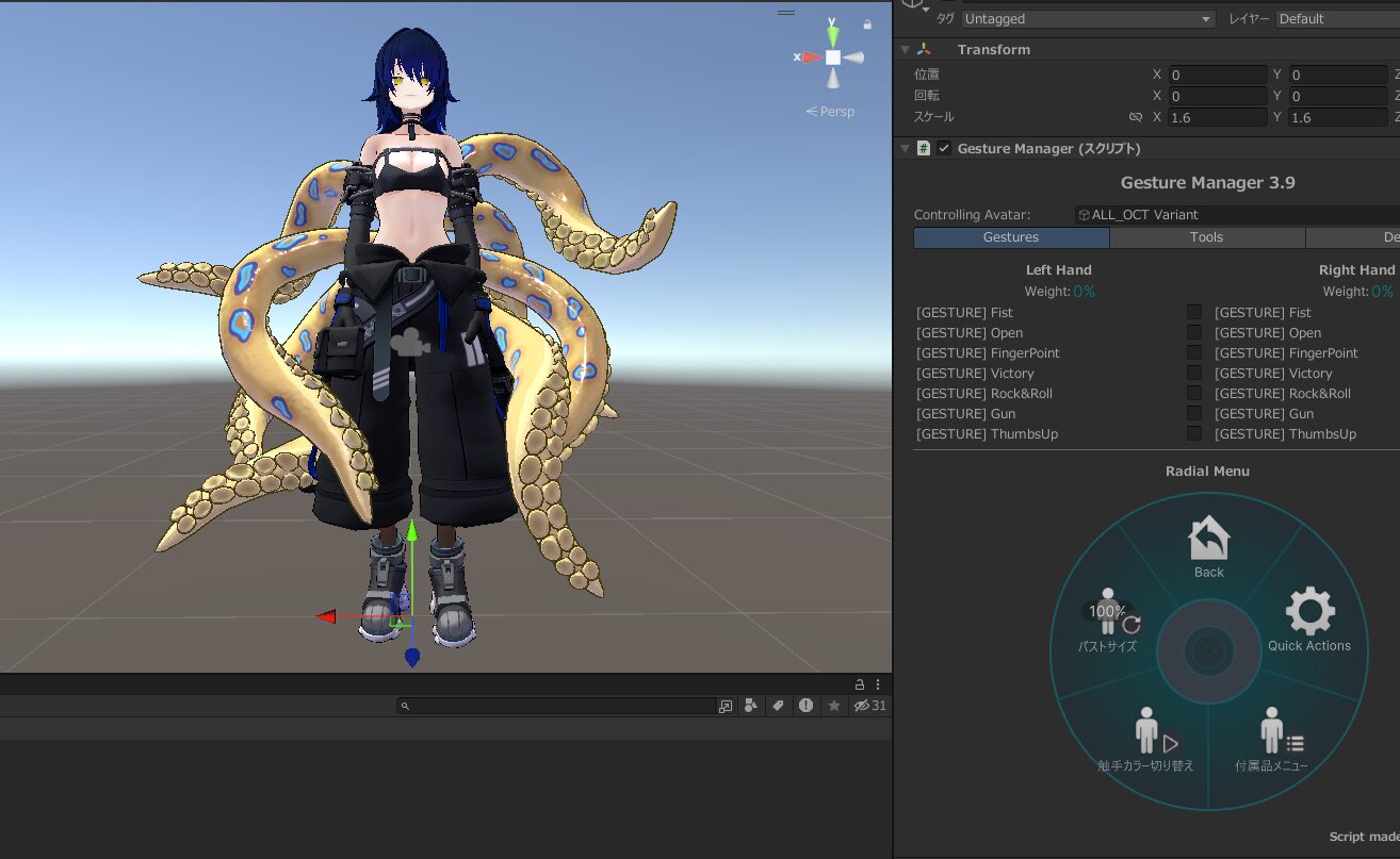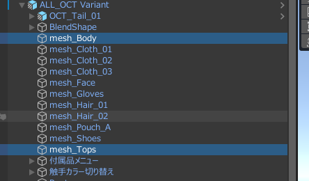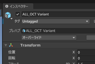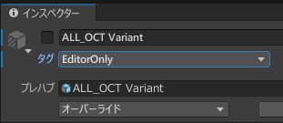 今回は触手と体のセットアップがされているALL_OCT Variant.prefabを使用します。
