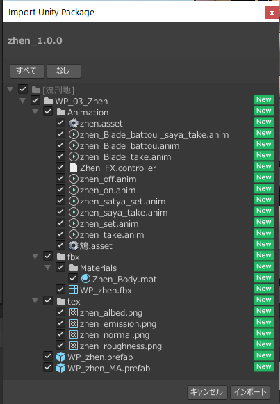 prefabをassetにドロップしてインポート。