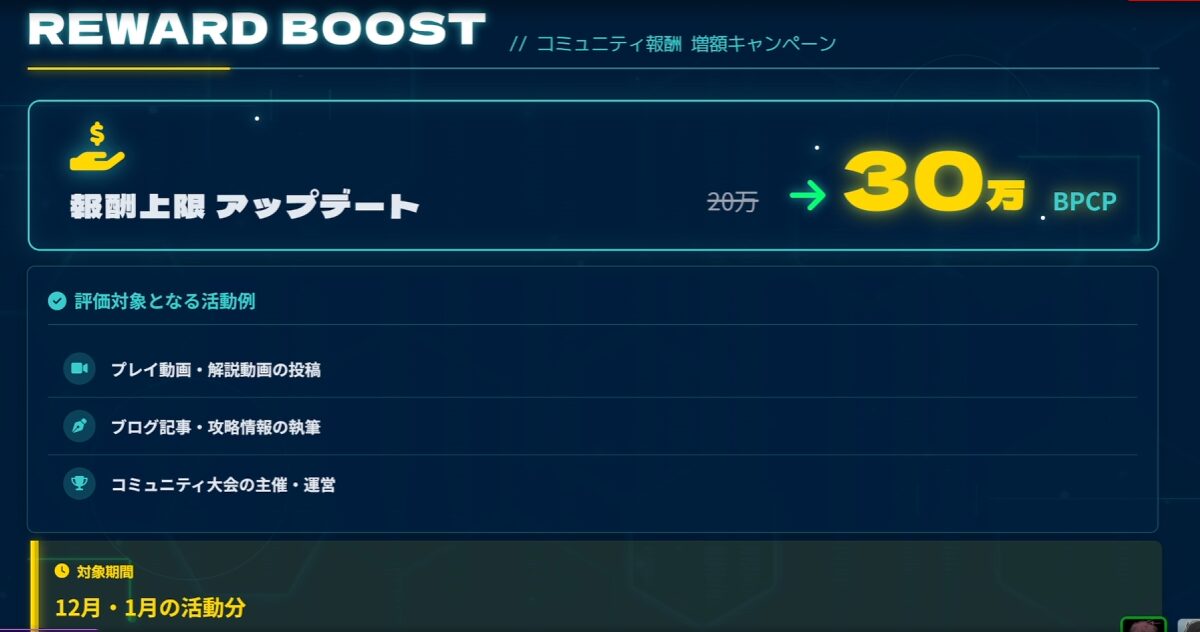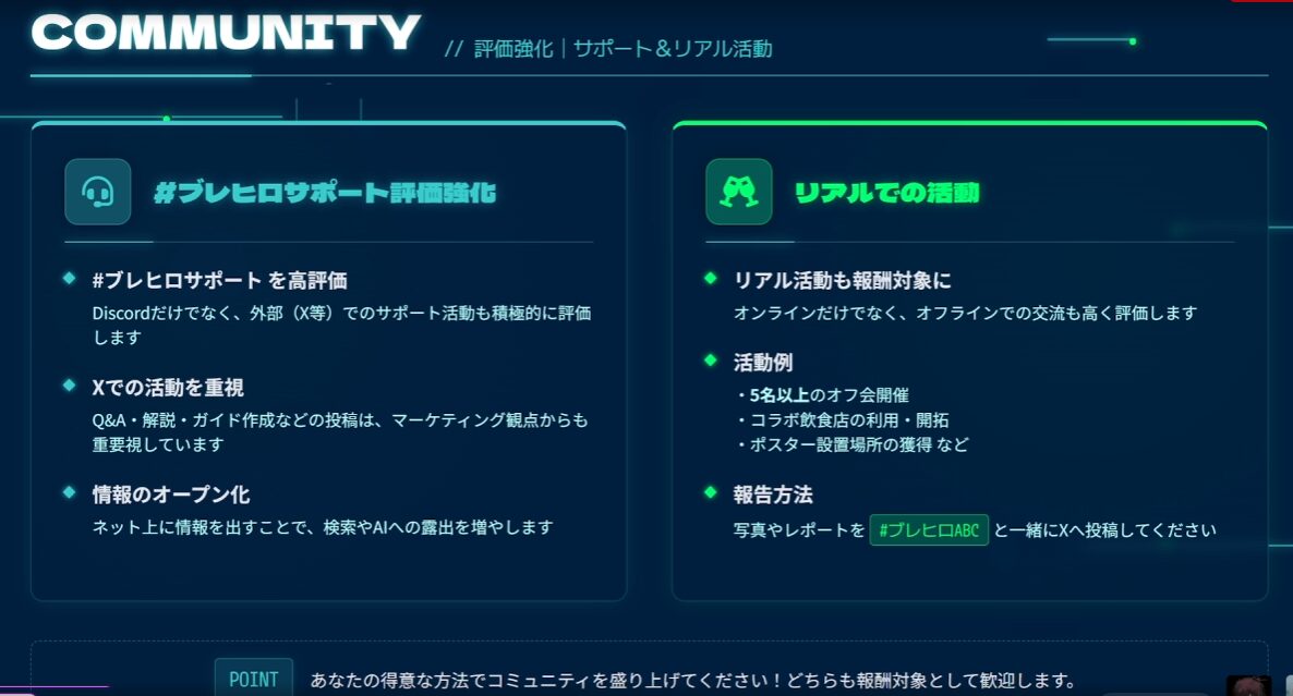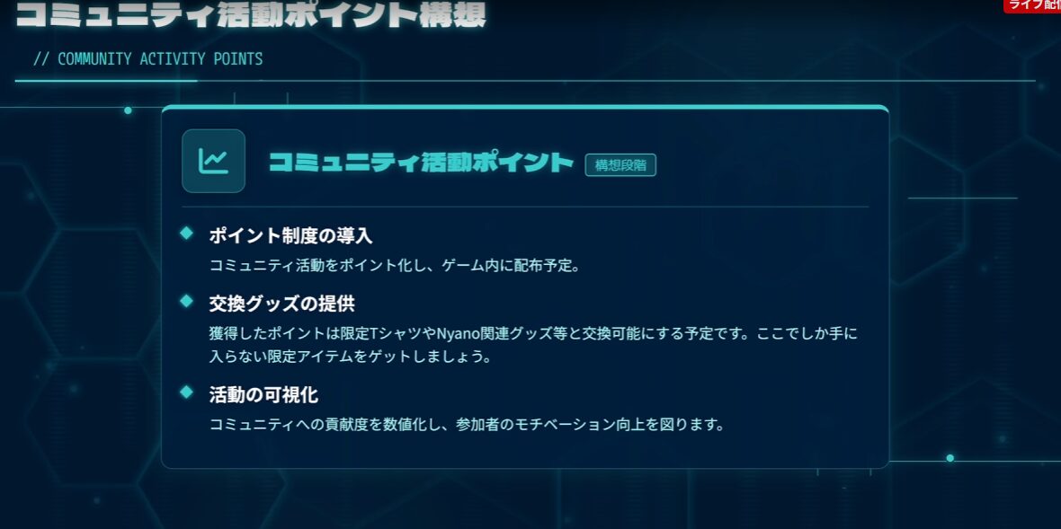 コミュニティ活動をポイント化し、ゲーム内に配布予定。