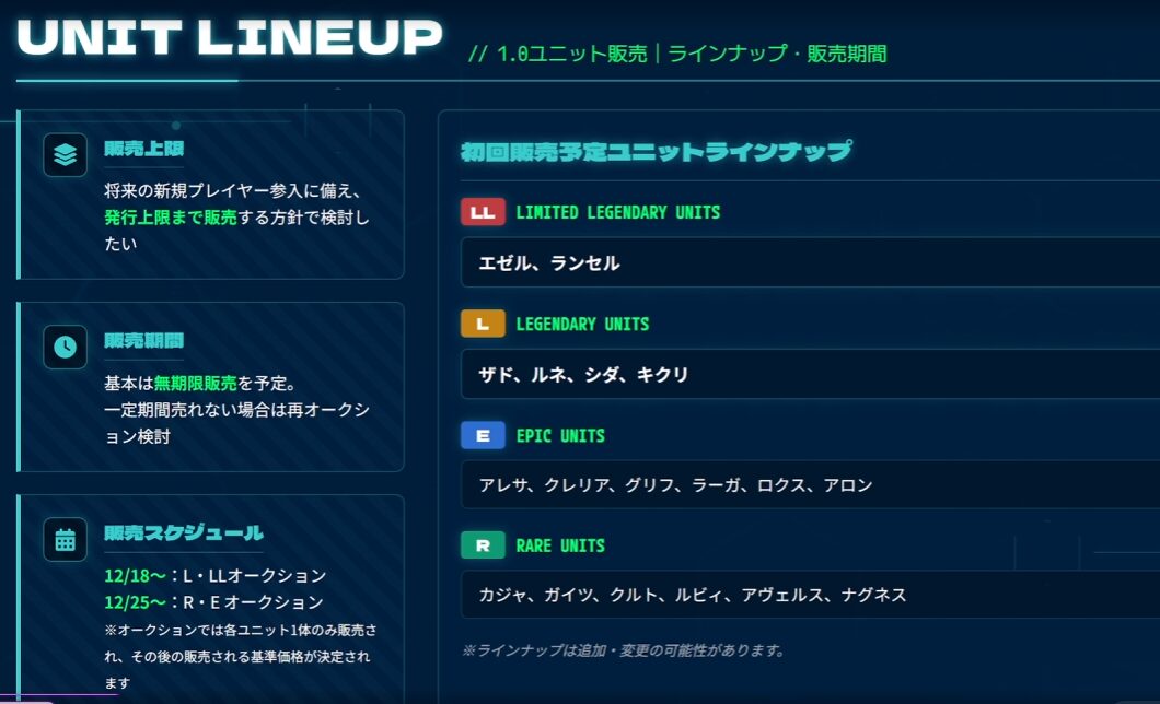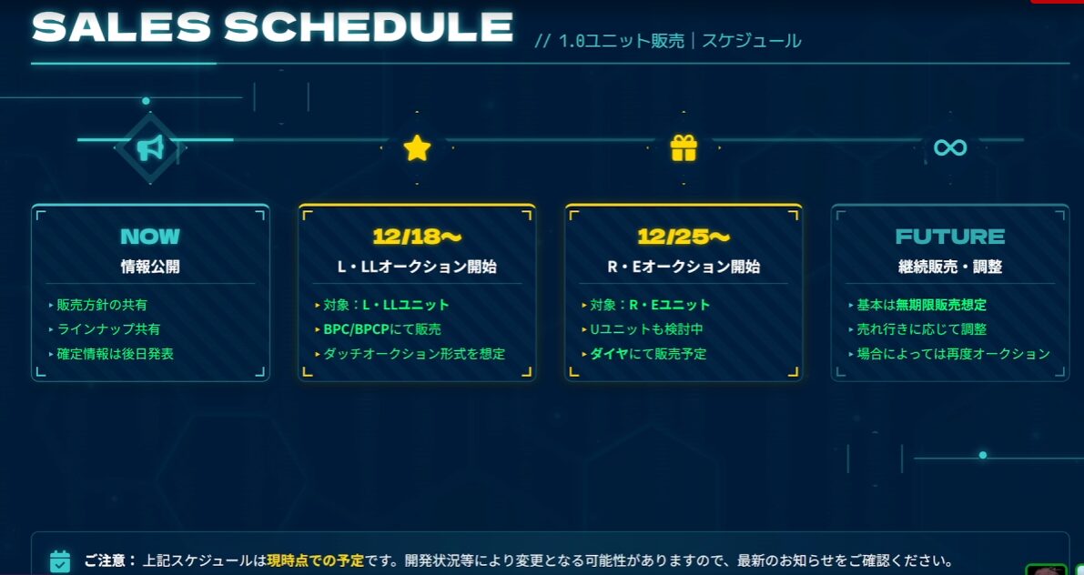 ダッチオークションの予定だけど実装の関係で変わってくるかも。