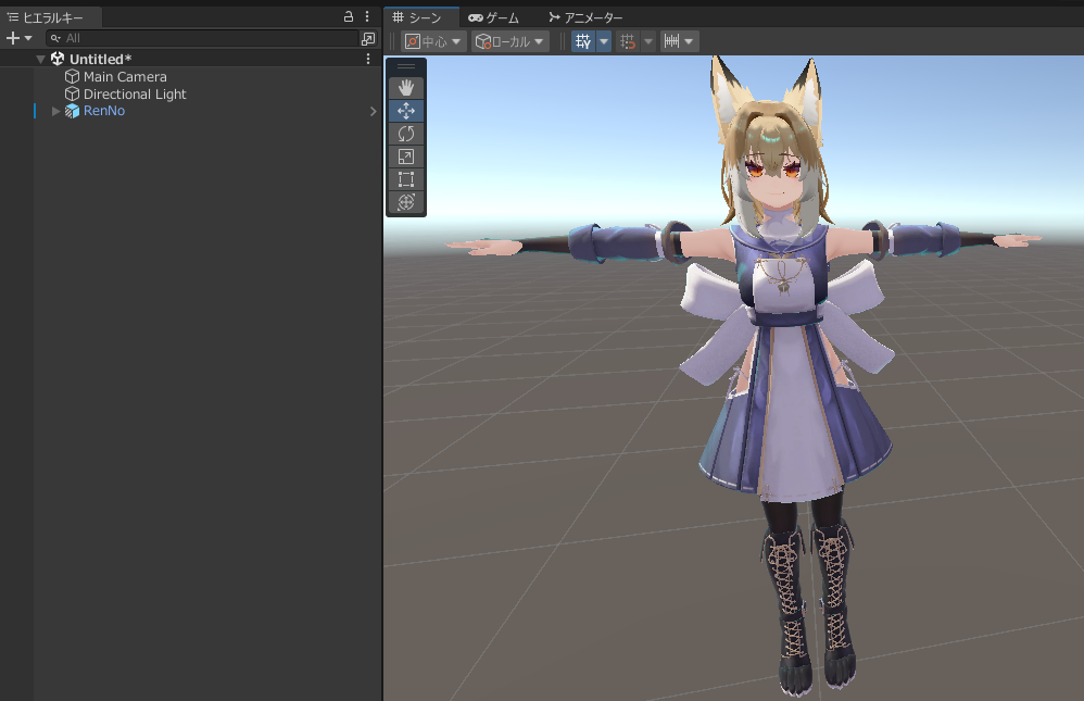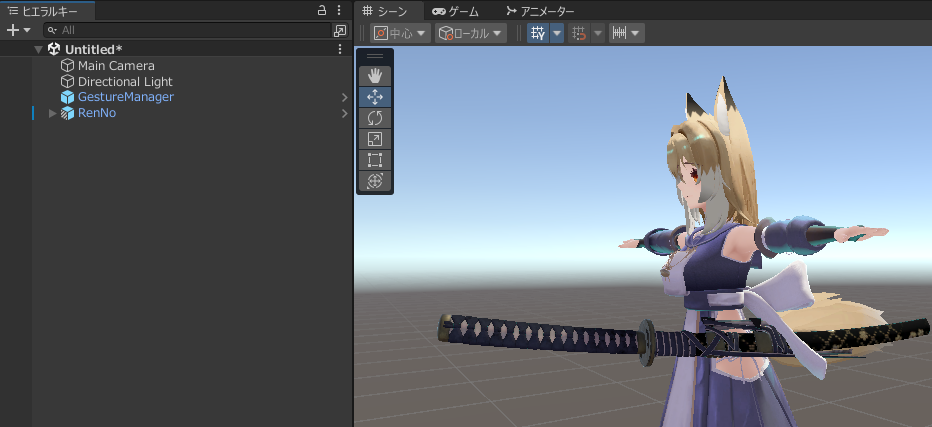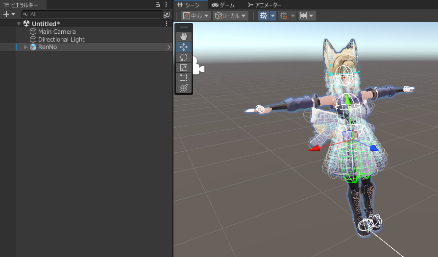 RenNo_Tachi.prefabを、ヒエラルキーにあるRenNo内にドロップしましょう。