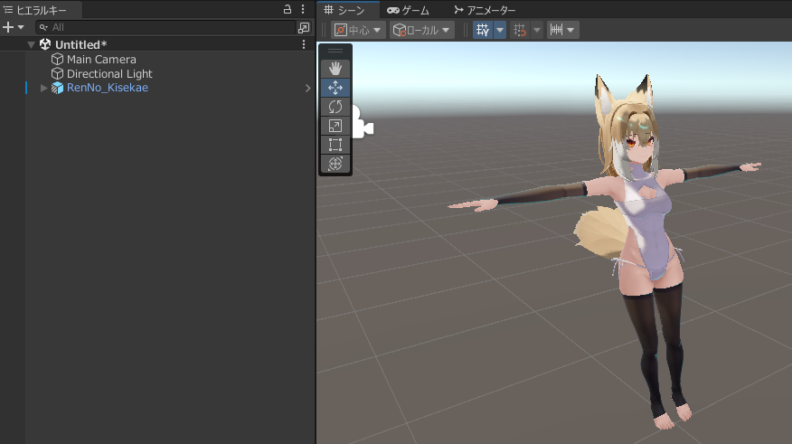 AkaneKitsune_v1.2.0.prefabをヒエラルキーにドロップ。
