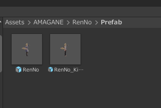 フォルダ内にRenNo.prefabRenNo_Kisekae.prefabの2種類があるので使用する方をヒエラルキーに。