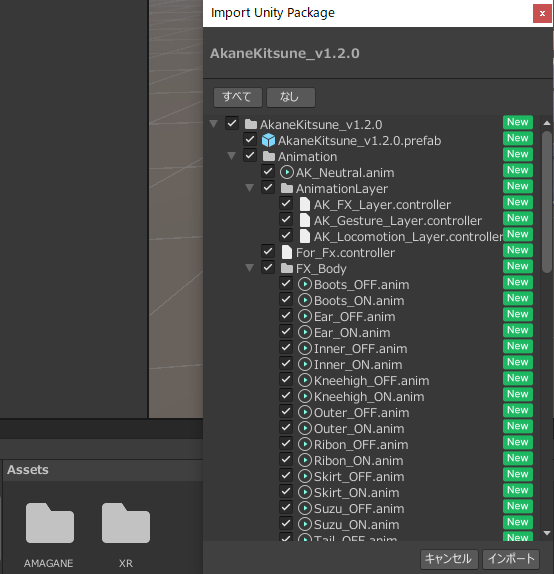販売ページで同梱されている茜狐アバターデータについても少し、こちらについては販売ページやフォルダ内にも解説など特に説明は無さそうですね。