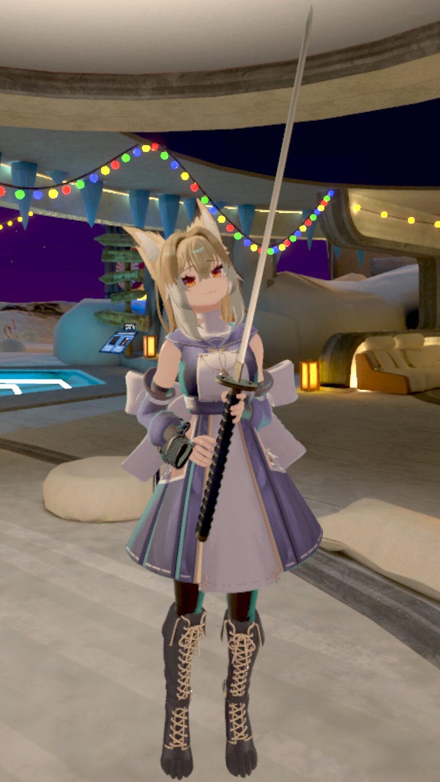 離す時は太刀の初期固定位置で手をOpen(パーのジェスチャー)にすると離すことができます。